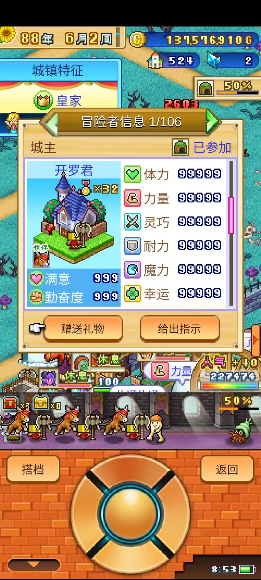 开罗的游戏我一直都很喜欢玩,有那种自由自在随心发育,最终都能收货成果的愉悦感。冒险村2对比1,堵路是不能堵路了。因为草地也算路,完全用房子挡住的话,冒险者们会站住不动。但是,还是有猛料依旧可以堵路的(堵路收益低的建筑不让冒险者去)首先,想要玩好这个游戏,你需要知道的几个要诀。1.冒险者的满意度,所有冒险者满意度总值就是城市的人气值。城市人气值提高,会来新的冒险者,给新的冒险