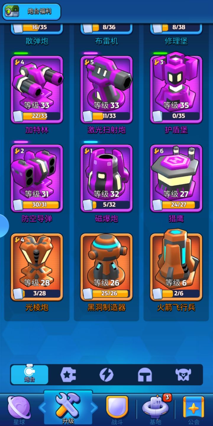 所有上阵的炮台,锁定一下,避免操作失误给合成了,摆阵型时候,先低星铺满,再逐渐平均升星,每次升星时候,炮塔下阵,解锁,升星,再重新放上去,不要嫌麻烦。购买炮台建议只买2千的,省钱,还可以领奖励。