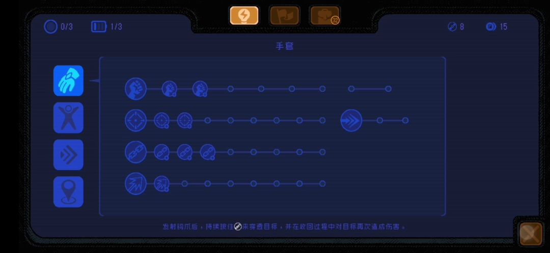纽三河60%,坐标(0,1)需要从上面落下的时候用冲刺然后一直往右普通解锁,有一个白色齿轮,酒吧里间左边暂时无法继续探索。