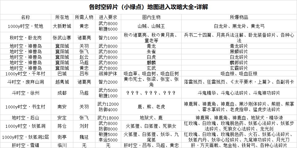 【卧龙传·各大时空·碎片地图】进入指南