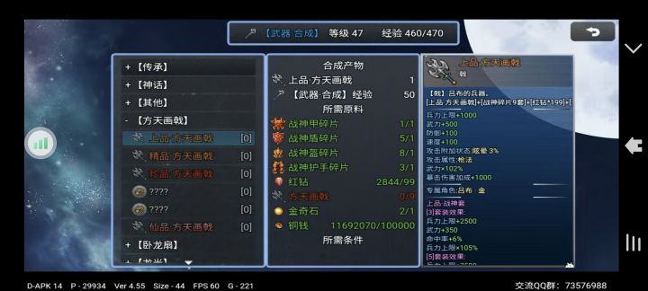 官方认证QQ群73576988相信很多的小伙伴跟我一样获取到吕布很兴奋,迫不及待想让吕布穿上属于自己的套装吧?首先我们要了解升级的材料来源,以及数量所有的材料都是来自荆南副本,建议红钻扫荡金奇石(襄阳张飞绿点)需要武力8000,用最好的装备、卡,穿着进去一次,后面无需再穿(这个设计挺好为小陈👍)上品方天画戟(普通方天画戟9把,金奇石1个,战神碎片各部件1件,红钻99个)精品方天画戟(上