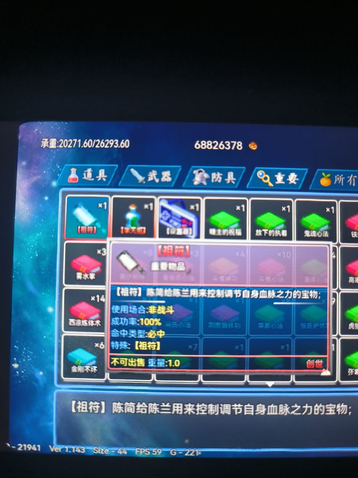卧龙传666#发现好游戏 第一章 第二部分城内公告栏处输入兑换码领福利如下图城内隐藏物品图如下城内找到刘稳健处sl武器鱼竿(肝皇阶段第一步)记得先打开:菜单背包、点设置器、点下一页找到洗练提示并打开如下图sl词条如下(sl:存档先存档等刷到想要的词条,没刷到就读档重刷)推荐主词条属性为:仙品、真绝品、绝品仙品:6%八维属性加成(兵、法、武、智、物防、法防、速度、幸运)真绝品: