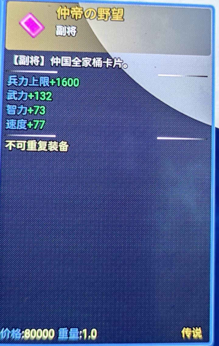 1.23版本全副将展示,还有两张图片放不下,放评论区,兵力推荐仲帝、双刀、曹氏,武力推荐西凉狼群、部将和五斗米,还有一个值得推荐的副将卡就是河北双雄,加命中闪避暴击百分比。