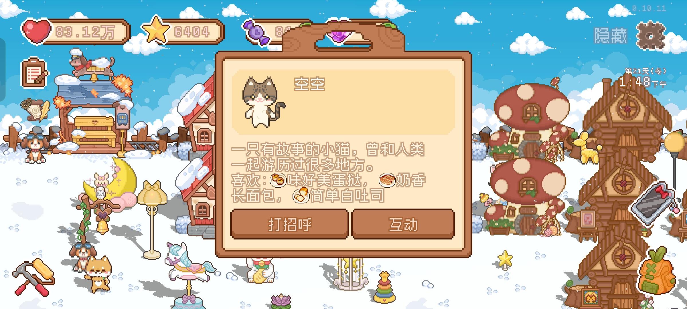 像素风可爱到我了~!小猫也很萌!核桃宝宝亲亲,整体还是很治愈的哦^