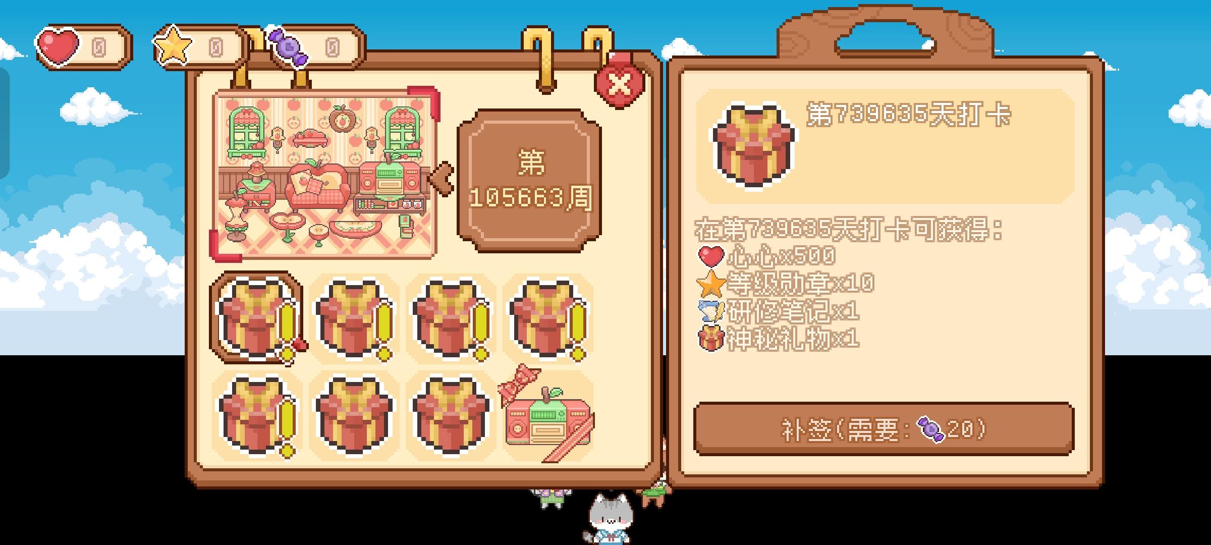 签到了十万个周,终于出新的签到家具了呜呜X﹏X,可爱村真的,我哭死这个bug谁来管管呢,我的存档还能回来吗...