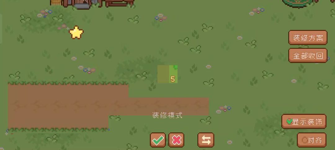 🫠#我的可爱村 前面一条地砖是之前铺的,都是按✓,后面再买了想继续铺,对齐一开始是没开的发现对不上开了也没对上又关了。