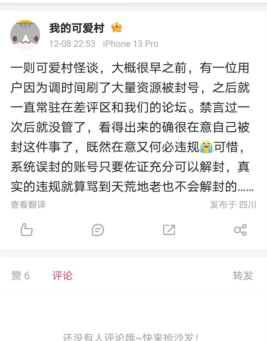一则可爱村怪谈,大概很早之前,可爱村策划亲口说不管头几次公测调时间玩家也没管,最近一次公测也确实没调,之后就策划态度、不看反馈和玩法问题一直常驻在差评区和他们论坛。策划怕玩家把展示他们两幅嘴脸的聊天记录抖出来只能匆忙禁言,但是越来越多反对的声音拦不住只能不管躲到微博,然后在微博断章取义添油加醋故作委屈地发一条微博标榜自己平常高强度视奸论坛但是有在干活啊,看得出来策划很在意自己被玩家冲被频繁差评这件