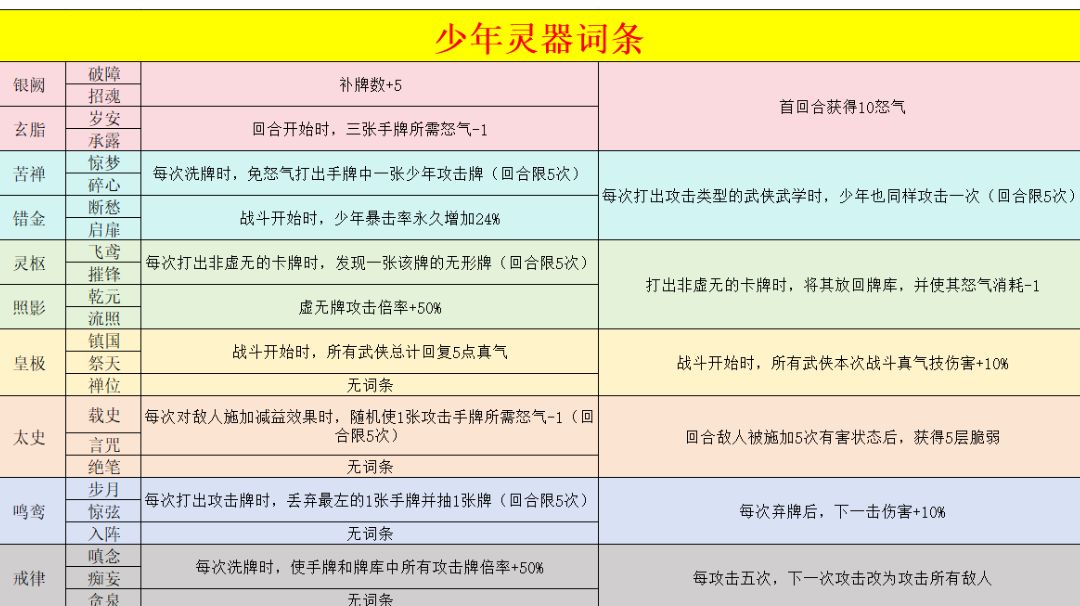 1. 古今2新词条合击,攻击最高的友方再次打出。 2.真气技能 狂岚同款,全体加护甲并给血量最低友方加一层免疫。不过真气回复是回合开始时,这点比狂岚的更优。 3.境界被动 额外多一样武学卡,并且可以降低2怒消耗,补输出。 经脉挂树全体4防御。 4.武侠神兵 和狂岚类似,武侠神兵才是重点,给队友伤害加成。还是比狂澜优,两次触发就能达到最大值。玩鬼王可优先拉满神兵。 5.新神兵 数值神兵,全体武侠6层