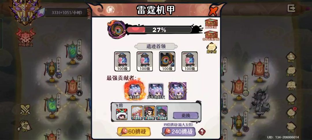 灵器在另外一边,我是四命神将0书仙,灵器都是橙色的话神将零命也可以。#古今2风起蓬莱 #古今2风起蓬莱攻略