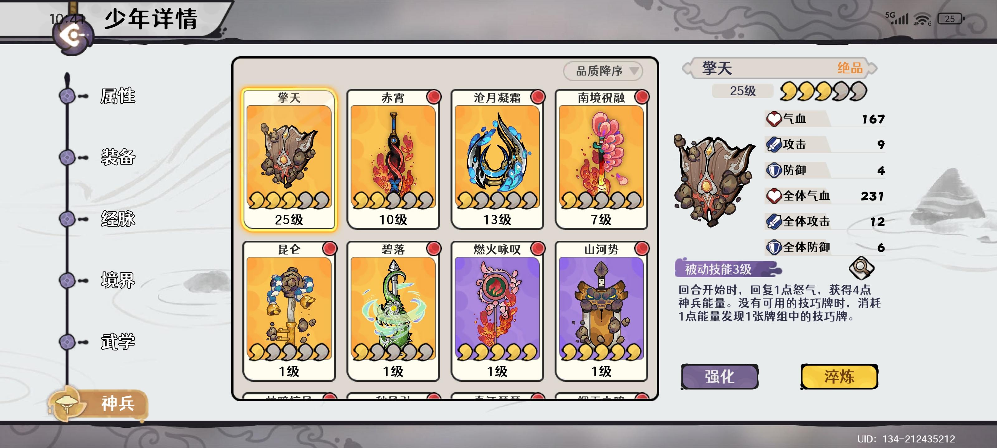 按夜月神的新手工攻略抽了4+3剑魔 中间抽神器歪了个沧月正好换了个蛤蟆抽了紫镰准备第二队养毒队 现在不知道该干嘛了 又想打幻境给剑魔刷装备 但是武学还有好多没拓印 又想养一下紫色角色打擂台但是缺好多铜币 体力又太少想两头抓但是怕浪费体力 有没有大佬指点一下