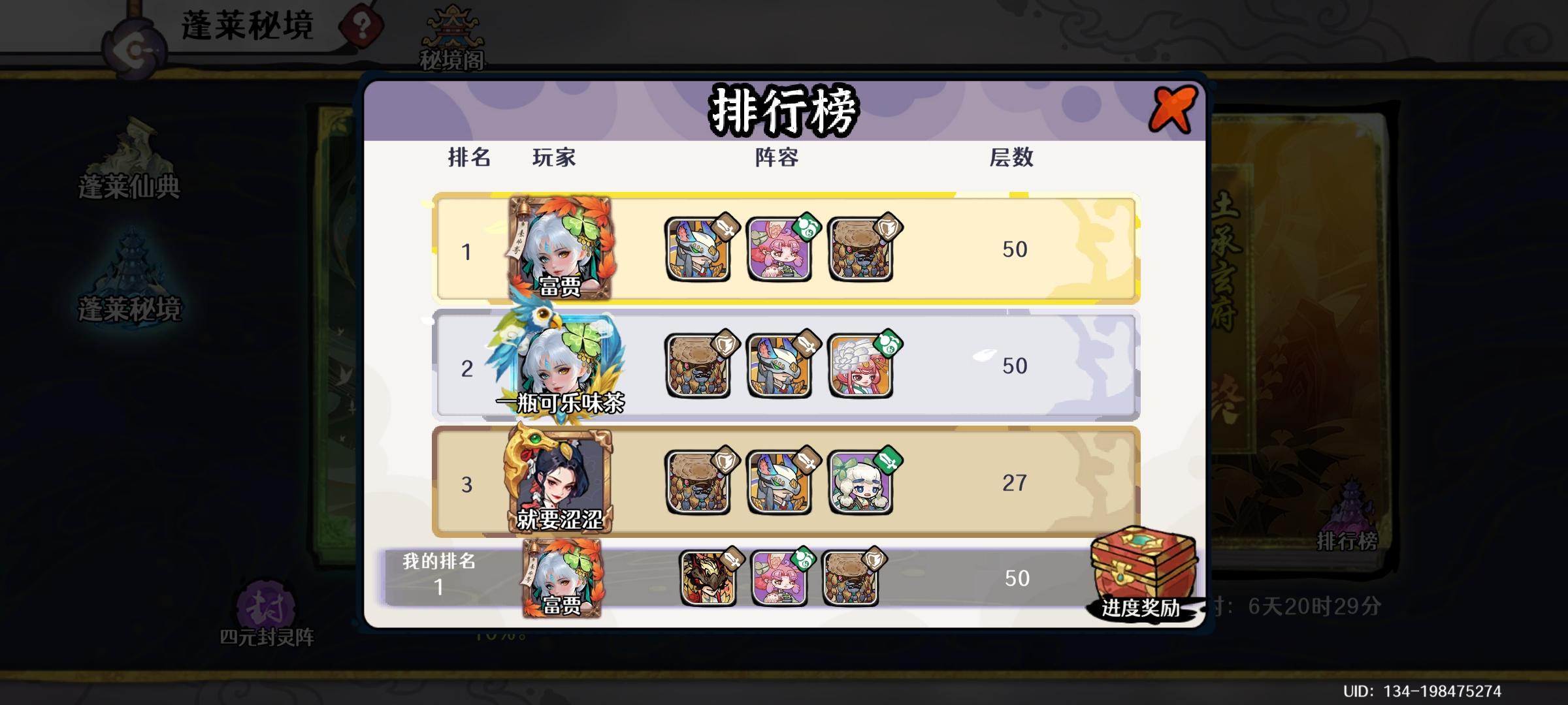 每周安卓官服的蓬莱竞争都很激烈,四系蓬莱榜很难被一统天下。终于,争分夺秒之下,总耗时29分钟,成功抢下蓬莱四系榜一!还有谁再质疑富贾的理解!纪念终于完成夙愿