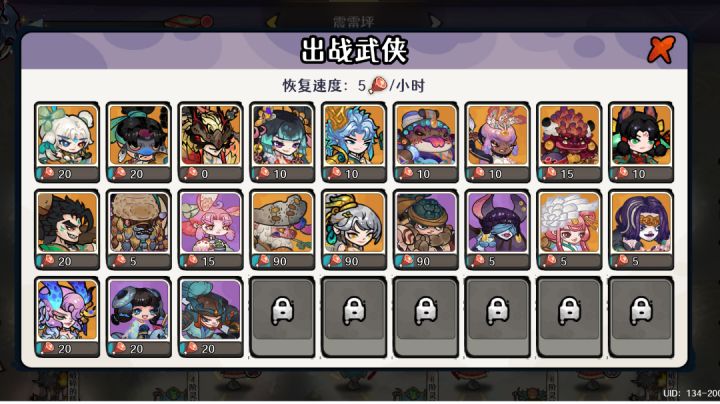 1.门童只能携带6个武侠,每个武侠初始体力为100,一般情况下是3人一个阵容组2队。但百戏里属于开荒阶段,怪物数值偏低,我们可以用输出武侠单独组队,再组一队专门打阵眼和BOSS。6个武侠组4队,这样我们可以节省很多体力,进图即可快速拿下6个3级矿。无需等待体力恢复。配置要求:输出武侠,组3队,必备神兵碧落。练度高1、2级矿可以用少年带任意武侠打,3级矿用青云、剑魔打。2.阵眼一共3张地图