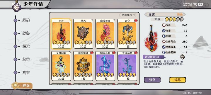 放在开头,这种周本纯纯是在消磨老玩家,劝退新玩家!可以看到,一天时间下来,能过蓬莱40的,粗略也就三十人左右,因为这40人左右里面还有些人是只有单个或几个阵容能过40,其他过不了的,ok,作为普通的月卡党,每天全勤的玩家的练度能过多少呢,先简单发一下个人练度武侠:剑魔4 传人3 无情1 鱼仙1 其他全0 除了琴心以外,武侠全满神兵:生涯5,倚天2,其他全1布偶:没搞懂,还在学习经脉:除了