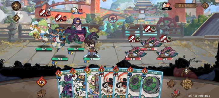 由于幻境限制每牌1怒,可利用回怒牌无限怒气。所以目标就变成了找回怒牌和抽卡牌。破天刀是为了加伤和群攻加速用的,烈风斩是加伤和抽牌用的。振龙吼会0费自动打出。记得关闭抽牌优化。这是经过实战,10把里可能有1把运气差过不到牌要打第二回合,其他都是一回合结束战斗(战斗时间你别问)。中间我试过狂澜加攻来加快节奏,但是会断抽牌节奏,循环不起来。建议是追风升到1🌟,卡牌伤害提升50%,性价比拉满了