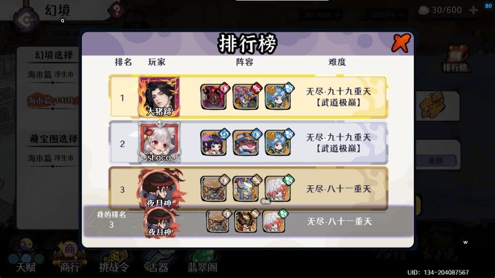 一、本次幻境上:浮生市下:千灯栈二、幻境特殊机制1.海市篇通用机制:钱生钱模式。即:①初始祭坛被替换为卡牌商人;②赐福无法通过祭坛获得,改为卡牌合成获得;③卡牌数量可封印超过15张部分2.「浮生市」特殊机制:己方攻击时,每命中一个敌人,本次伤害提高15%。敌人气血上限+30%。3.「千灯栈」特殊机制:回合开始时,使攻击最高的武侠获得20层【共舞】(少年施展攻击牌时与其合击)