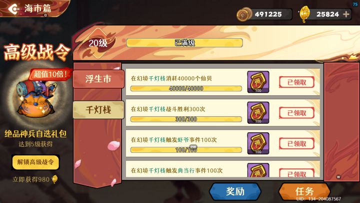 幻境战令任务和古器都满了