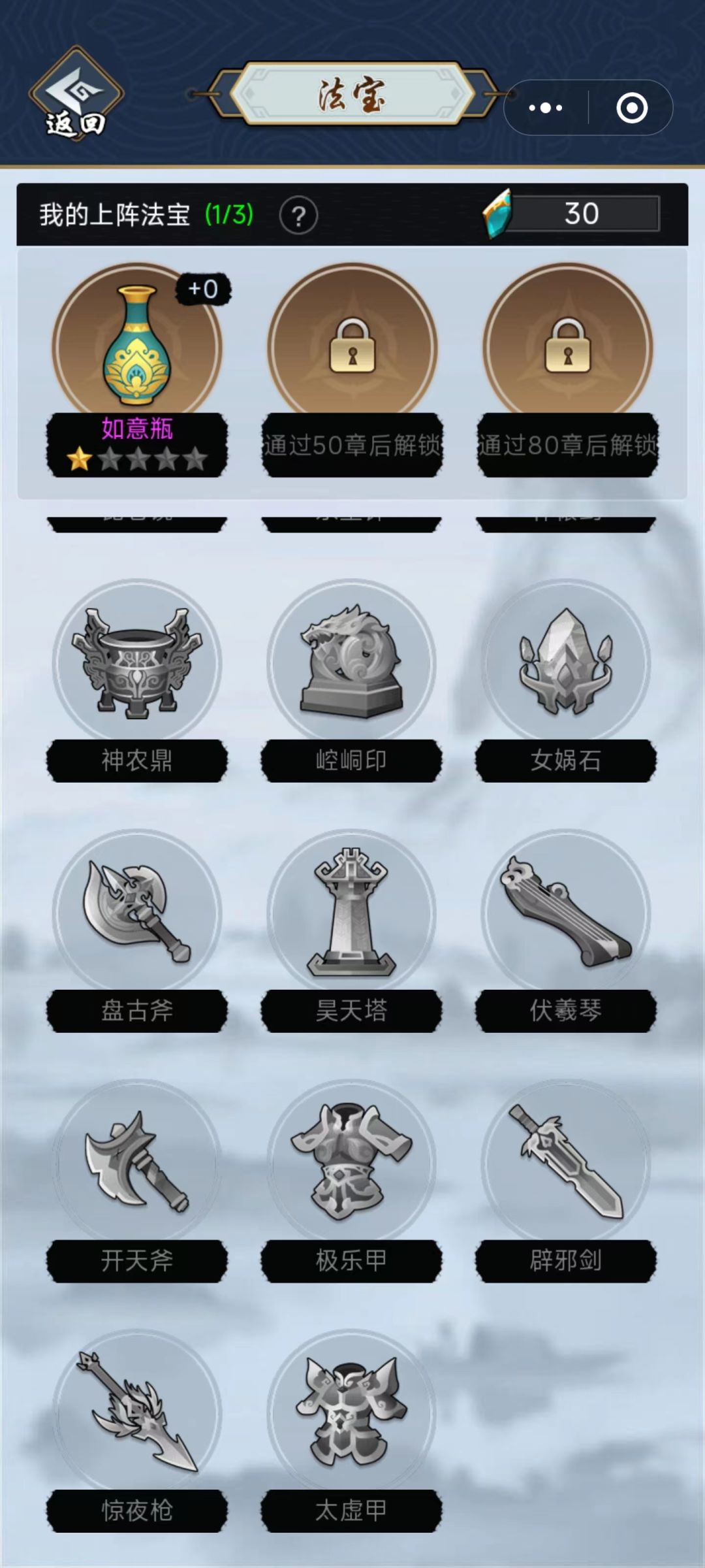 本文首发【剑侠攻略组】公众号,未经授权禁止转发至其它平台。 前言 今天就来给大家盘点一些剑侠风云里的SSR级的法宝。 活动能获取的资源内容 女娲石:基础属性--最终血量+2%(无需上阵即可生效),特殊效果--遭受攻击时3%概率只受1点伤害。 盘古斧:基础属性--最终攻击+2%(无需上阵即可生效),特殊效果--自身血量低于30%时,提高5%攻击和回血效果。 昊天塔:基础属性--最终血量+2%(无需上