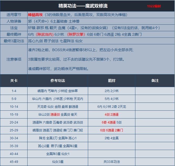 游戏最吸引我的就是自走棋部分了,不喜欢套路固定死,就像下棋一样,天胡了就一种套路,不胡了也能苟得住。玩了一个月冲新区的号,说一下前期通关的最佳羁绊配备:刮痧流核心思路就是通过减伤和各种debuff让怪(特别是boss)秒不了你。技能只需要带一两个就够。优点:成型快,带基础套装装备可以一直到35章,也不是特别费重置卷抽齐64武功后,搞点高属性的装备,慢慢合成基础套装,都能过。我0氪第7天到了