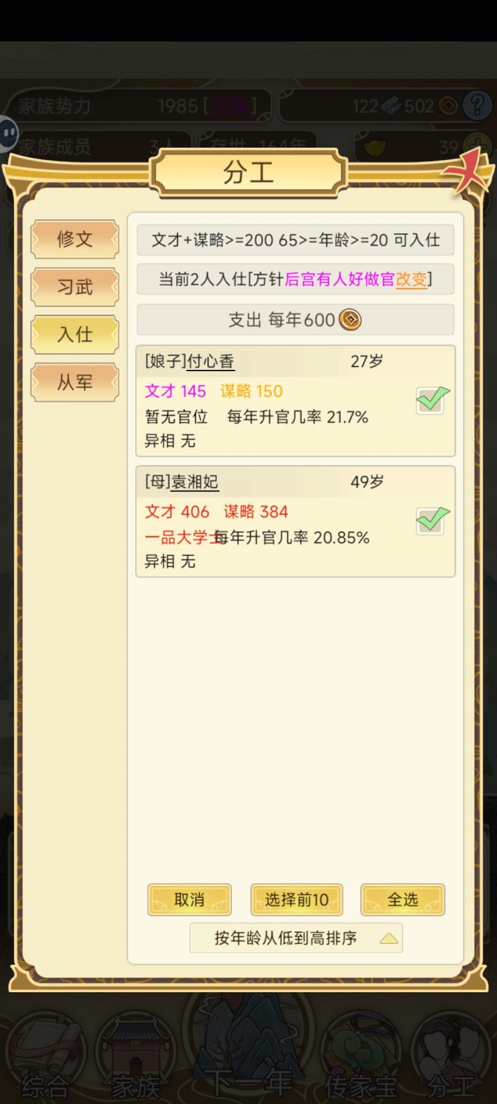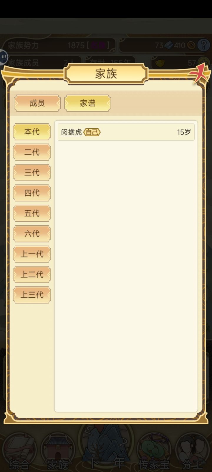 我只能说,这游戏虽然每年都有些繁琐重复,但是处处有惊喜,挺上头的,打开游戏第一次玩了好几个小时才退出去,有没有人知道年度大事,家族中有个成员拿到了元宝,但是好像元宝都不见涨啊,是我的问题还是游戏的问题啊。。。