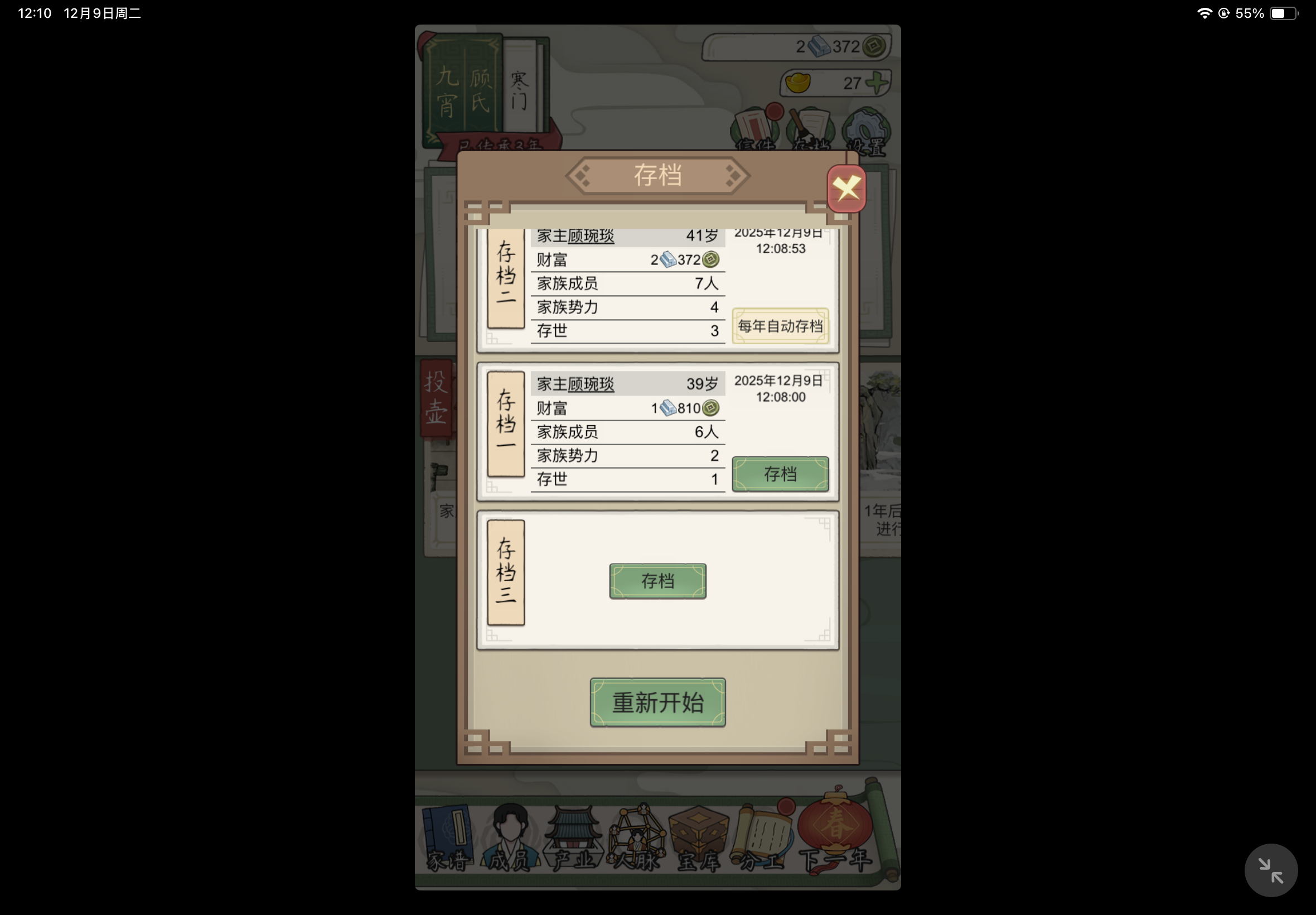 玩了一天时间有点上瘾,现实给我狠狠一击,打工只能养活自己,经商是寒门的起点风险还很高,提升自己,打工,经商,每个都不能掉链子,苟到最后,能力不是最牛的时候不要上!能力非常厉害了就打到一切嘿嘿嘿😁😁😁😁