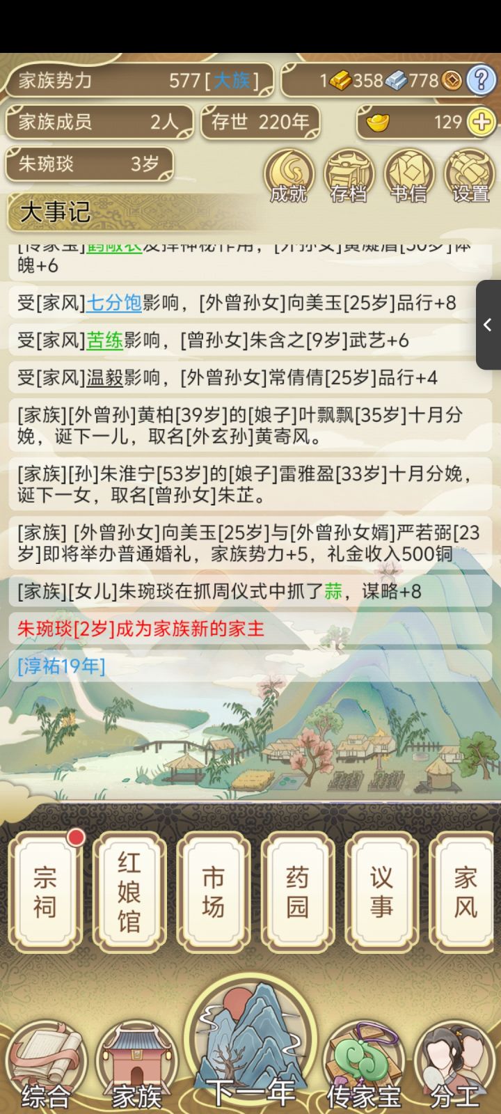 我只能说,这游戏虽然每年都有些繁琐重复,但是处处有惊喜,挺上头的,打开游戏第一次玩了好几个小时才退出去,有没有人知道年度大事,家族中有个成员拿到了元宝,但是好像元宝都不见涨啊,是我的问题还是游戏的问题啊。。。