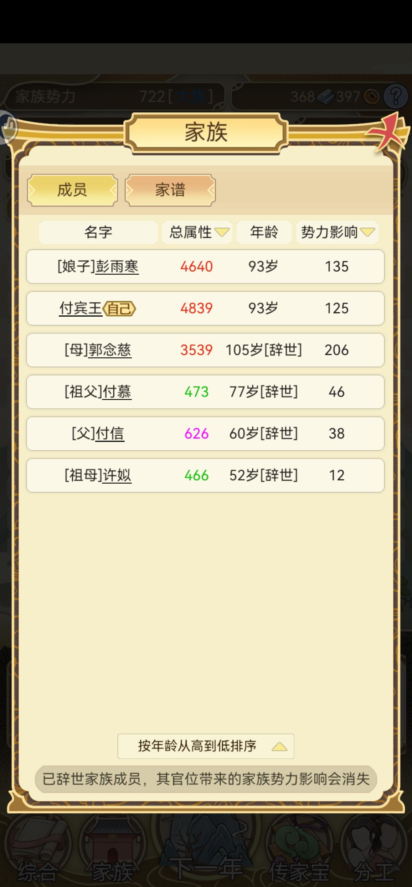我只能说,这游戏虽然每年都有些繁琐重复,但是处处有惊喜,挺上头的,打开游戏第一次玩了好几个小时才退出去,有没有人知道年度大事,家族中有个成员拿到了元宝,但是好像元宝都不见涨啊,是我的问题还是游戏的问题啊。。。