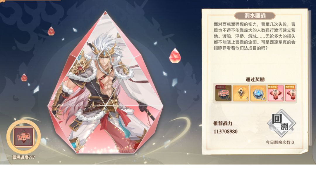 在神话马超演义中童渊、狼女、甄宓、姜维、星彩、各种弓兵(白蛇最好)、鲁肃、各种多段攻击武将、马超、骑吕都挺好用,为了顺利通关建议多准备一个盾和一个医生。 1.月夜除贼 简介:12个出阵位,本图难度不大,推荐12个人总战力86771200,相当于每个出阵武将达到7230934战力可轻松过关。 技巧:稳扎稳打,童渊、白蛇等远程即能发动攻击的武将建议放在下面四个出战位内,左边出阵位和上边出阵位建议各放一