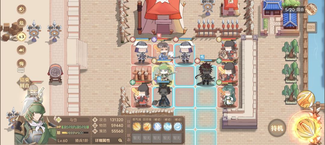 派庞德卡位右下角的医生上来补血,怪就杀3回合医生和钟繇,基本3回合内解决战斗!靠大招和联携。