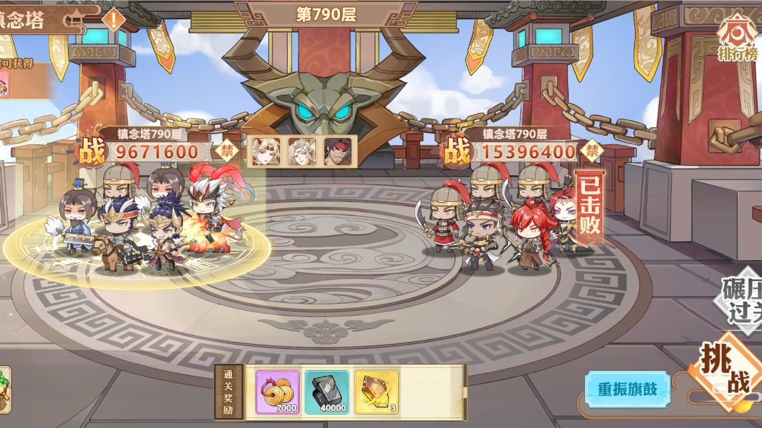 吕布主c,香香只升武器,配个只升防具的高顺,790这里是最难的,小的怪禁了香香,没办法只能用我这180万的香香主c去打大怪,走位拉扯还真打过了。说什么吴蜀强的你换诸葛亮周瑜来不被暴打才奇怪,战棋游戏4格射程和2格射程那可是天差地别。也别杠我是氪金了才强的,真氪佬都是金装备了都,我这装备真的不怎么样。游戏所有的资源都在塔里,600到800这里就是靠不断以战养战强化香香武器过来的,靠诸葛亮周瑜那两格攻