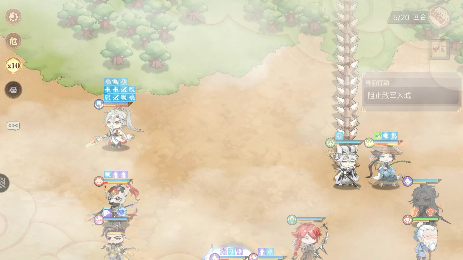 4.宛城密谋 推荐战力:24761040 过关思路:开局先打死左边的贾诩,进而打掉下面的张绣,注意阴阳屏障BUFF的敌军,稳步向上推进即可,伏兵会出现多次,集中走一起补充好状态,过关不是问题。 #游戏攻略 #英杰传群英演义