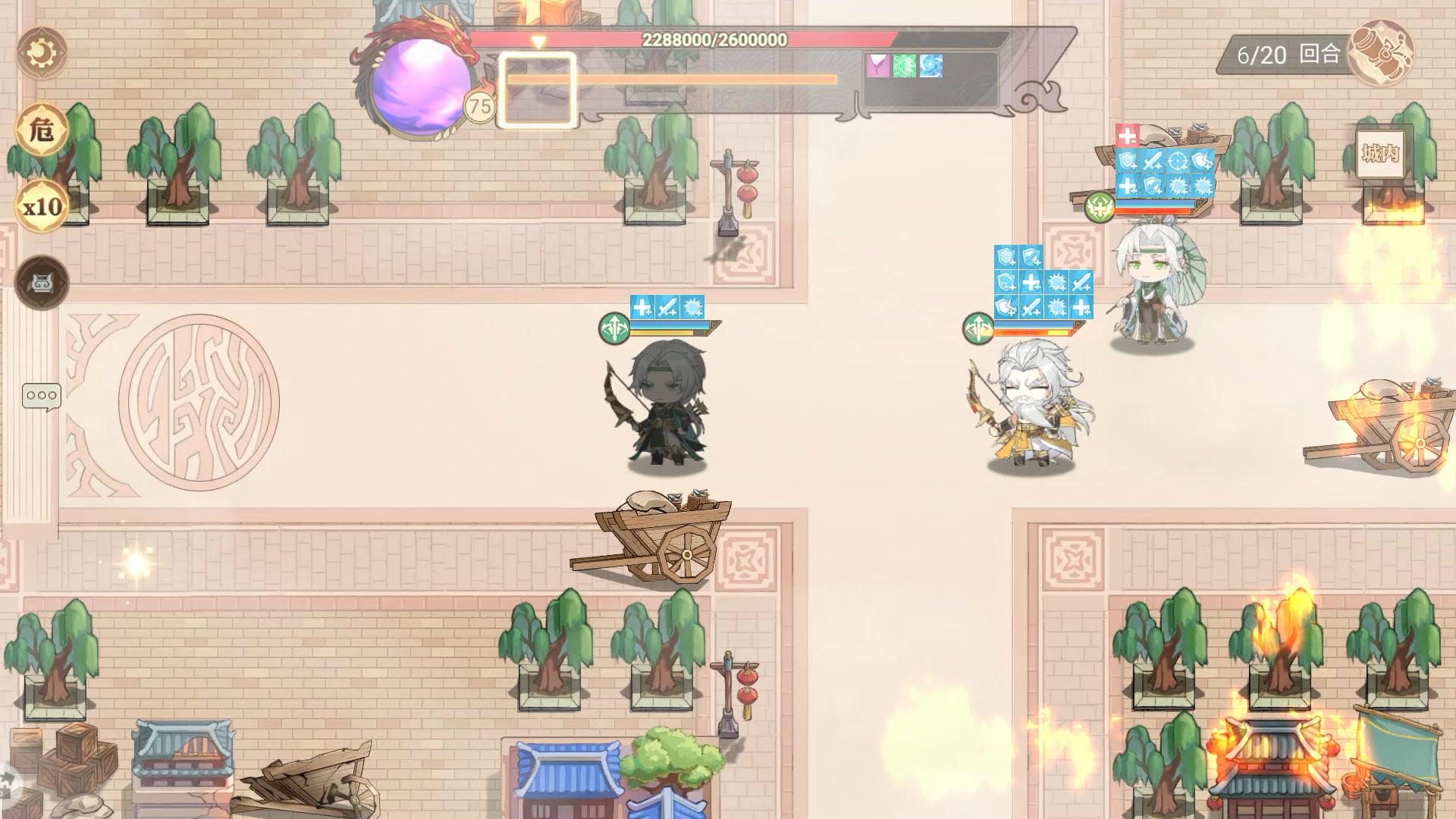 3.雒城之围 推荐战力:23946960 过关思路:通过走位限制我方百姓的以及敌方的走位,并且运用好步兵的护卫,确保每个百姓每回合最多只会被两名敌人攻击到,同时最关键的一点是每波敌人一定要在自己回合没结束的时候杀完。 #游戏攻略 #英杰传群英演义