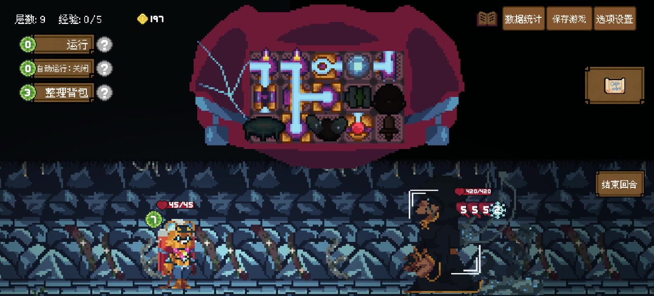 效果:运气还不错,收集到的装备挺多的。现在一回合能有一百多点的能量,加上刚拿到了第四顶礼帽,能量会越来越多。防御已经可以实现一回合内叠满9999点了,疾速、闪避和狂怒暂时是一回合一百多点,刺客匕首200多的初始攻击力。伤害低了些但保命能力极强,关键是可以实现全自动,对我这种喜欢把游戏放一边挂着的人来说体验还是不错的。 模式:更多战利品(为了能更快的搜集齐装备)。 角色:CR-8,因为我发现开启自动