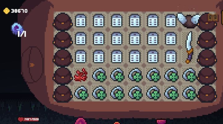 根据之前论坛看到的不能叠加刷钱,商店的物品无法放到背包里就会被弹回去,不消耗金币反而返还一次金币,只要有沉底的物品都可以用这个方法刷,只需要在沉底的物品上保留一个能往上弹一下的空间,比如我这把是一格的器材,只需要留一格#游戏攻略 #背包英雄