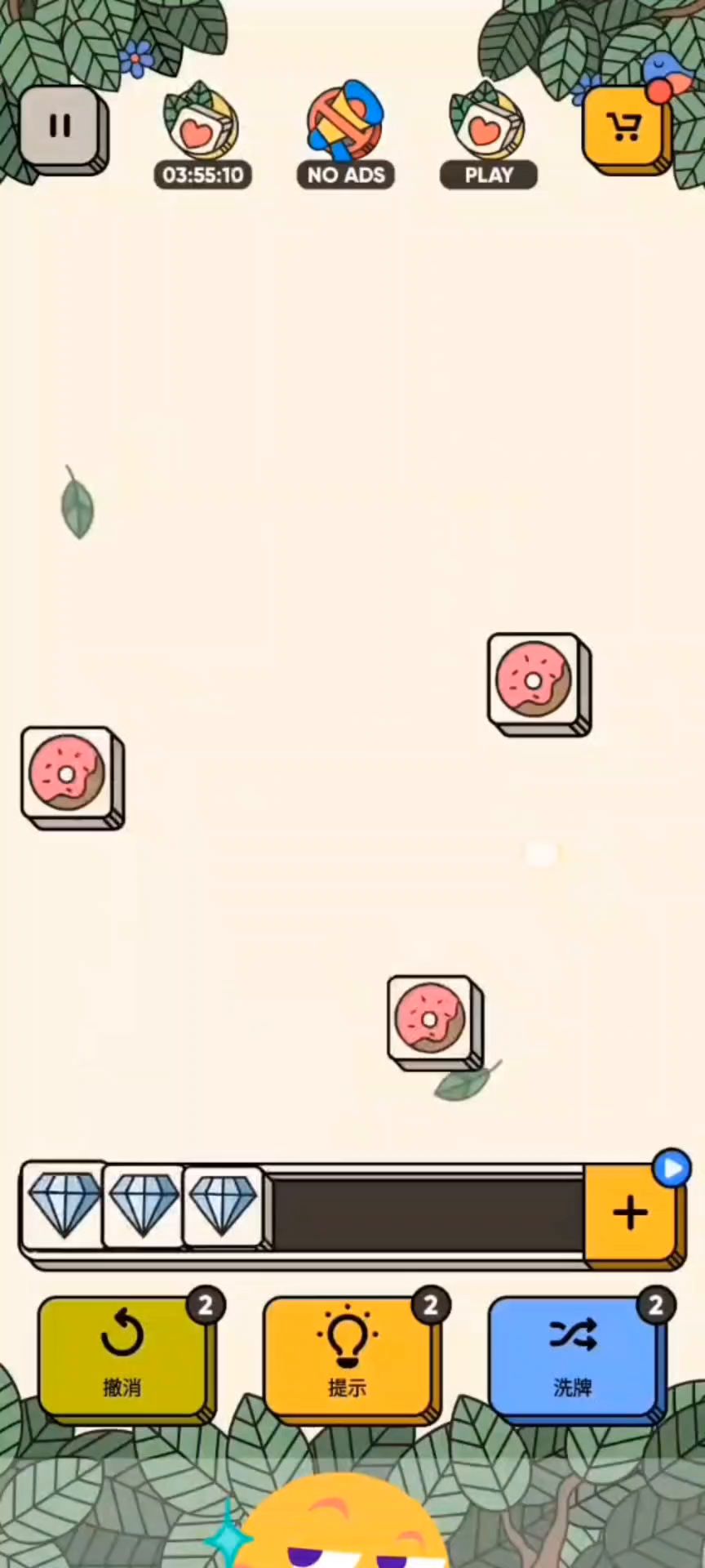 通关的关键是,别急着为了消除接近如图中所示第三阶段时已露出的可消除三张卡牌,而消耗离散卡牌。此处可看今日更新的视频帖子。