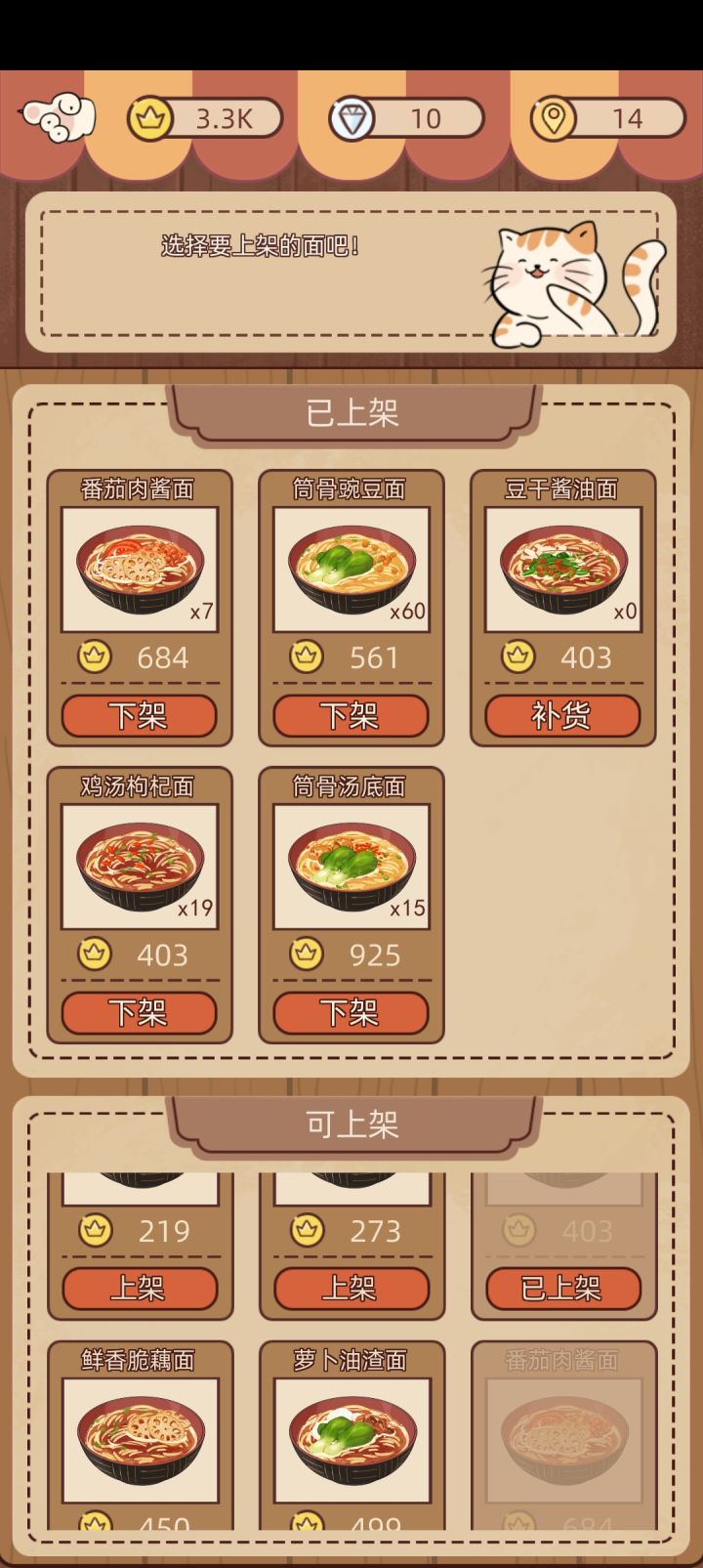 3:故事:开头的时候说了个故事线,去奶奶家的面店,但是后期游戏中没有剧情了。如果适当给每一碗面或者不同地方的特色面来点科普,或者有风土人情味的小故事或者吃面小贴士,或者是老板和顾客有一些暖心互动。感觉会更加丰富些。