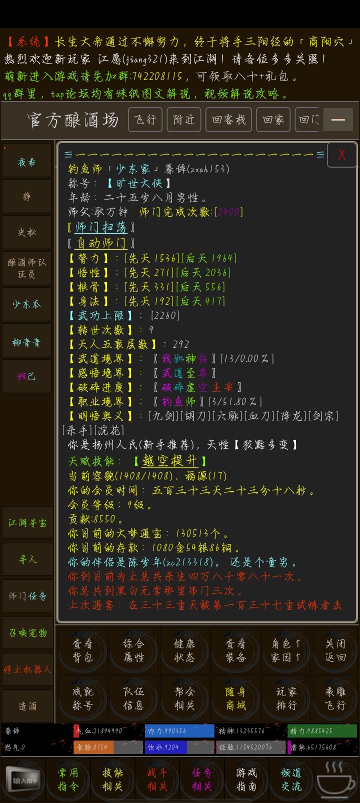 投胎完成后大家就可以领取新手福利了,😃😃这里推荐大家先加入群聊QQ(742