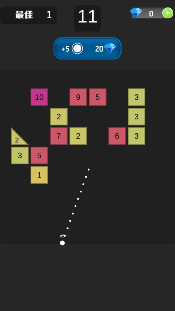 滑动你的手指瞄准并射击方块。尝试在方块移到底部之前射击尽可能多的方块。