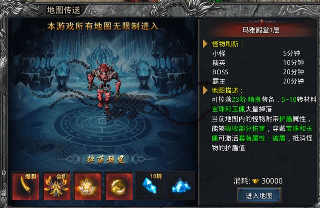 咱们《自由之刃》游戏最大一个特点就是,所有地图的进入都没有限制,各种各样的打宝地图任意进出。 但除了普通的刷怪地图,自由之刃里有一些特殊地图存在,这些地图没有普通地图复杂广阔,空间上更加直观,这会让玩家更直观地找到十倍百倍的怪物,更容易爆出好装备。那么究竟有哪几类特殊地图呢?接下来就让满小编来带大家来盘点一下吧。 玛雅殿堂 玛雅殿堂地图里的怪会带有护盾值,所以需要玩家提高宝珠及玉佩的等级,从而削减