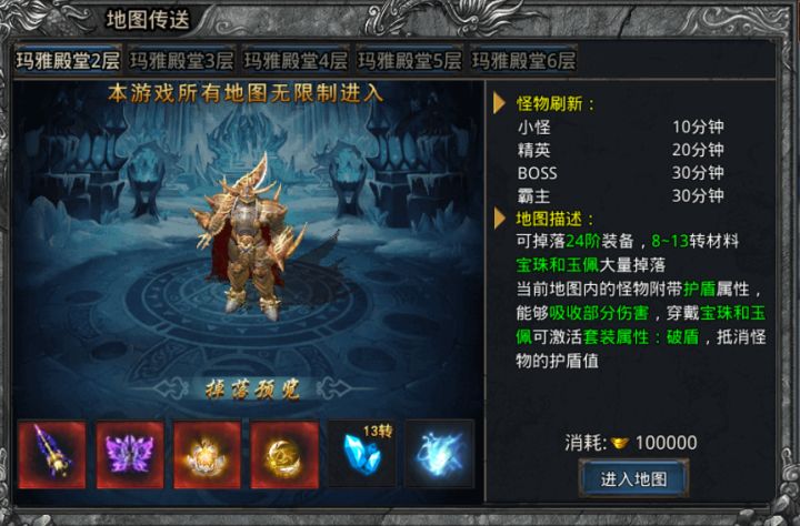 《自由之刃》有多样化的玩法,打BOSS还有极品掉落,均有宝珠玉佩掉落。游戏中除了不设条件的野外地图,还有一些极具特色的地图。上期给大家介绍了《自由之刃》特色地图的其二,现在请跟随小编接续往下了解更多详情内容吧~1.玛雅殿堂玛雅殿堂的BOSS身体外有一层特殊的硬壳,拥有强大的防御能力,身体具有护盾特性。受到伤害可使用护盾抵消所受伤害,同时也有着极高的宝珠、玉佩神饰的掉落慨率!提高自己的宝珠、玉佩