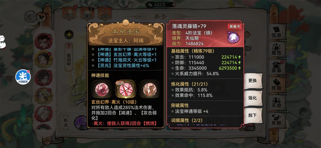 不废话。阵容魔司空,仙阿里,魔羊,唐和萧晨可仙可魔。 司空:修罗套,笔刀。装备 3 属性攻击为主,暴击,爆伤次之,第三第四词条速度和抵抗。无常胚必定要带丝。 法宝炼化暴击和爆伤再看情况补一些速度。不炼化物伤和法伤。 暴击达 100 。双龙镇 8 级以上。天赋以及怪癖➕暴击➕抵抗➕效果命中千杯不倒,大夏,剑丸子,心澄清➕命中。灵根洗好蚀骨和绝情,因为 3 灵根,点 2 灵根就开始刷技能。觉醒木灵根