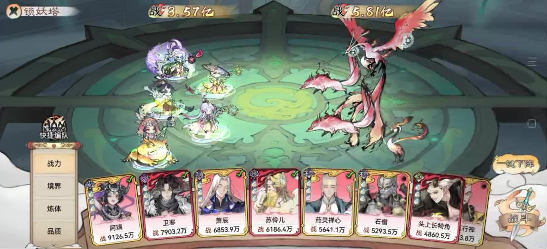首先就是这次跟赤血试炼不一样了,不能先卖血留到后面抽,第一轮就开抽 人物的话,联动三人组 小唐 ,剩下的一个萧晨 白千儿或者那个如花,谁星级高用谁 如果像图里这样三人组基本都三星了但其他的两个还是低星就可以不抽人物了,去补高星古宝,因为唐和白抽高星的目的是为了加速度,你古宝一样可以做到 如图,紫霞带那个丹凤印,加速度加攻击的都行,紫霞需要抢先手 至尊宝就这个木鱼 白晶晶的话,加防御生命的都可以,不