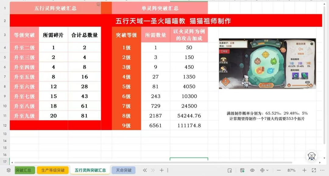 【喵喵教攻略】五行灵阵及灵阵突破汇总