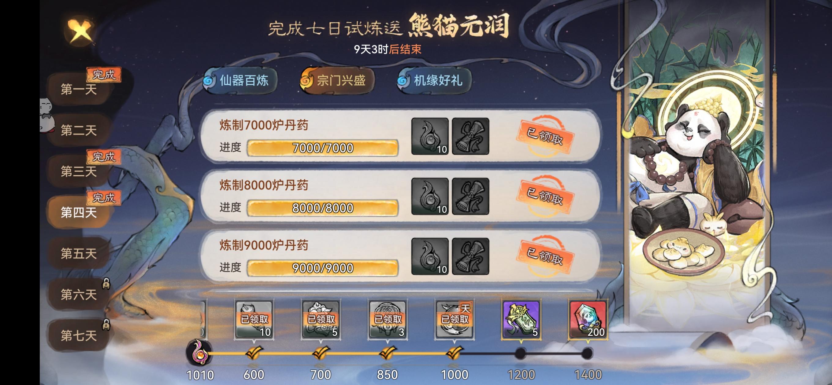 七日试炼第四天这个宗门兴盛要求我们炼制丹药,一路加到9000,但真的炼丹这么多炉,我们不仅没那么多灵草也没那个时间浪费,那咋搞? 其实这游戏炼制丹药的任务的结算在你点击炼制的那一下,也就是说你炼制999炉,点开始了,他任务就算999炉,这时候我们直接终止炼制就行啦,如图