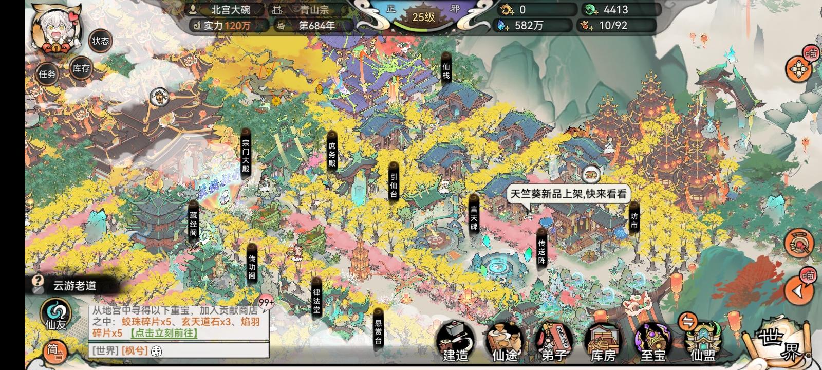修仙 轻松的经营养成 回合制战斗 还有水墨风的画面 就是这款最强祖师 哈喽 大家好 我是伍仟员 今天给大家推荐一款刚刚公测的游戏 可玩性非常高 吸引玩家的点也很多 最主要的是这款游戏玩起来轻松不内卷 所以决定给大家安利一下这款游戏 废话不多说 给大家简单介绍一下这款游戏的玩法 游戏开局 你将会扮演祖师爷 指导弟子修行 弟子有了 总得有个宗门吧 虽然有点破 但经过不停的修缮还是有点样子的 其他地方可