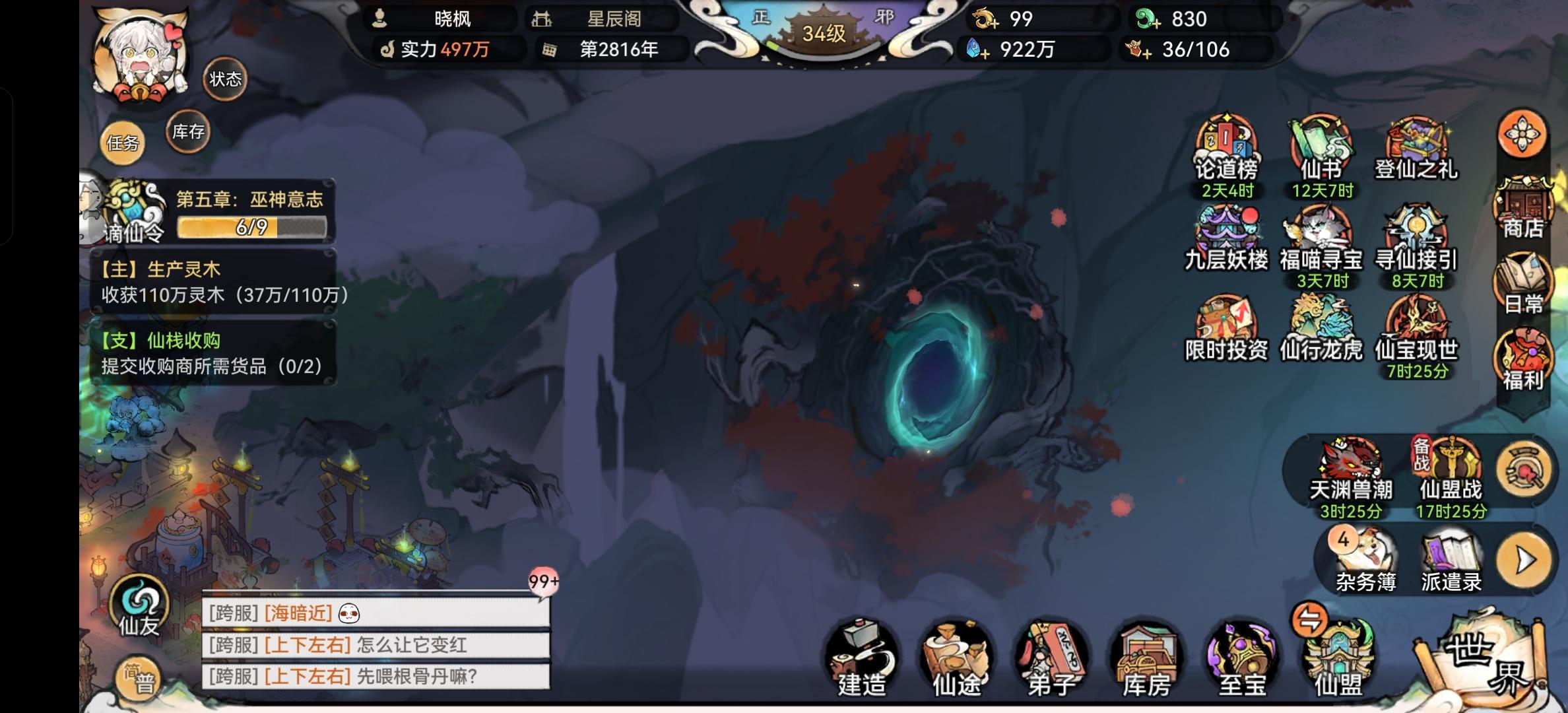 #仙宗共创 #最强祖师 游戏账号:m1vu8lds0700 游戏区服:星辰仙域1服 游游戏昵称 :通天教主 布局特色:首先山门必须有大广场,直通主殿,两边装上华灯,夜景璀璨 。合理利用每一寸土地,整齐布局两边功能性建筑 。经常用的像丹药房 、符箓坊、商店不要离太远 ,方便操作 。传送阵必须放在悬崖上 ,才有仙味儿 。建筑区要分为几个小区,有不同的林园风格。商业区必须和猫猫的靠近,这里是金融中心,