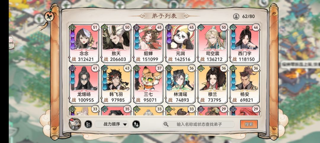 推荐一个超强弟子阵容搭配 司徒,元润,傲天,唐舞衣,司空(后面我给她改名为念念)