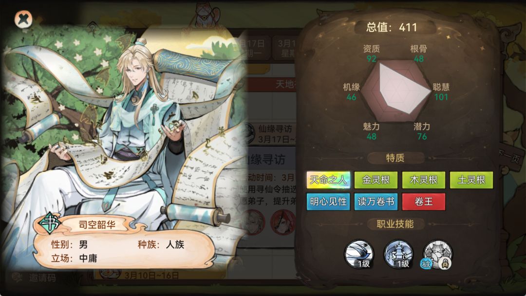 司空韶华培养心得-从萌新到飞升 本录以游戏时间为线详细介绍如何培养司空韶华。 思路为:前期司空基础培养-司空玩法进阶-选择后期阵容-各阵容司空后期培养 若祖师开宗立派已有些年头,可跳过前期培养。 前言 司空韶华,仙缘书生,法术直伤输出型角色,法术伤害队伍的核心,仙界开启后作为速攻阵容主力输出;其次在锁妖塔里能施加减益效果,在特定关卡有奇效。 司空韶华培养成本较高,若追求各榜排名不建议主养。 弟子介