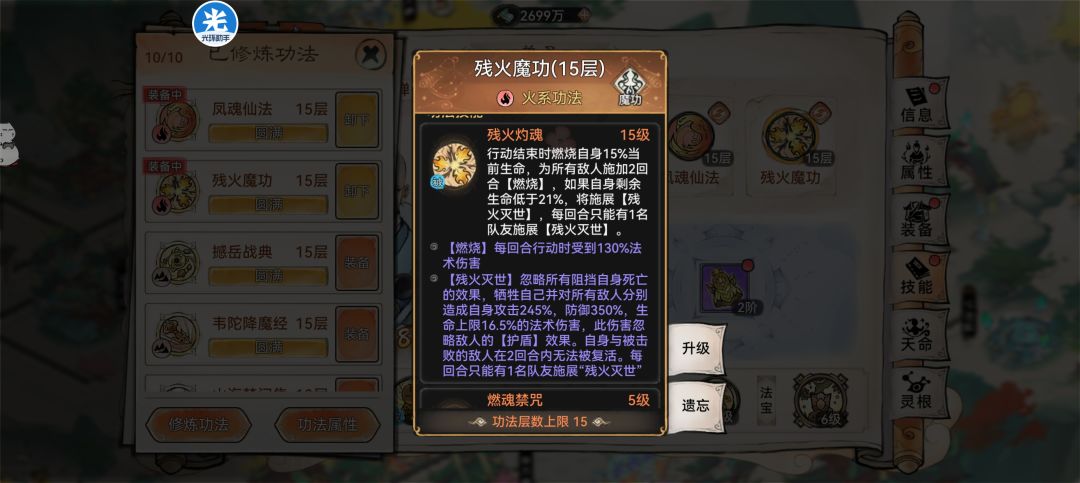 虽然世界里问大佬都说焚空剑诀很一般,但我自己用下来觉得真挺适合新手过渡的,我认为主要的原因还是稀有的功法没这么容易拿到,而且升级太费劲了,不如用一些比较容易整到的,起码升级省事