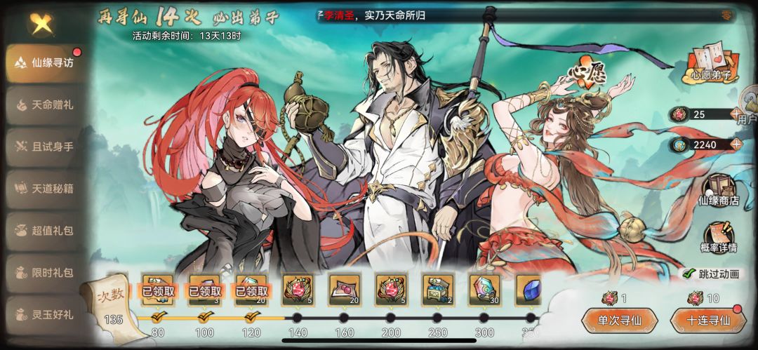 前期发展:开局先全力完成主线任务,快速提升等级解锁新玩法。拿到的资源优先投入到弟子招募和培养上,建议选择有 “天灵根” 词条的弟子,潜力巨大。比如首抽若能获得强力弟子,前期推图就轻松多了。 💪阵容搭配:前期可以用 “2剑客 + 1隐者 + 1禅师 + 1医者” 的组合 ,剑客输出高,隐者能闪避,禅师负责治疗和增益,医者保障生存,推塔杀怪效率高。随着游戏推进,再根据获得的仙缘弟子调整阵容。 💰资