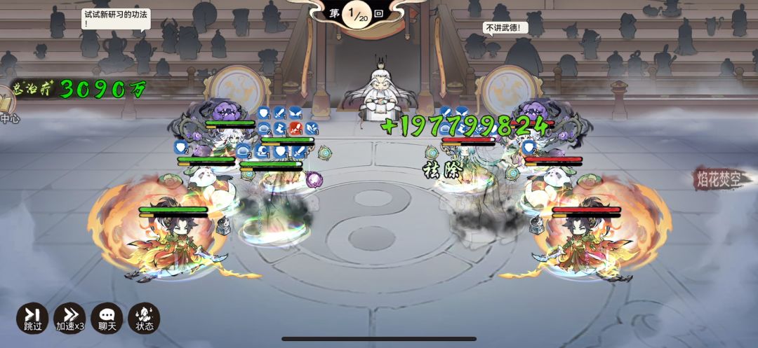 首先强度在线但很需要专属道兵 没有专属道兵=下水道角色(这点和韩立很像) 首先咱们来看技能 被动(意气风发):攻击减益状态的弟子,可额外提升技能伤害,每次释放职业技能时,会获得一层豪气(提升防御和火系威力加成),最多获得五层豪气(专属道兵可获得十层)。 核心天命(紫):降低每回合受到的前两次技能伤害。释放火系技能时,有概率额外释放火系法术群体伤害技能,该技能会受到敌人减益状态数量加成。 专属道兵